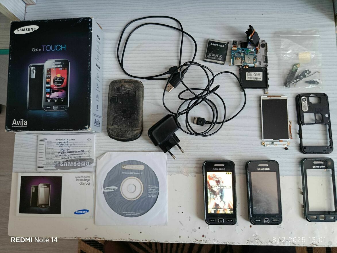 Samsung Avilla + Wszystko To Co Na Zdjęciu Do Niej 2 Telefony 1 Telefon Się Uruchamia Nie działa Dotyk.